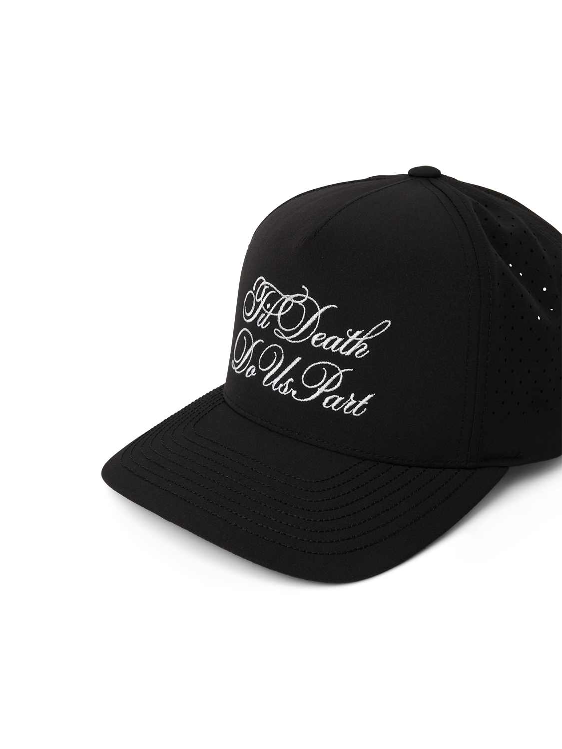 The ’Til Death Do Us Part Hat brings a clean, timeless edge to any outfit. With its deep black base and elegant embroidered script across the front, it blends romance and rebellion in the simplest, boldest way. This hat is perfect for anyone who wants a subtle yet meaningful statement piece, something that feels mysterious, poetic, and effortlessly cool. Wear it as a reminder of loyalty, legacy, or just your love for beautifully dark aesthetics.